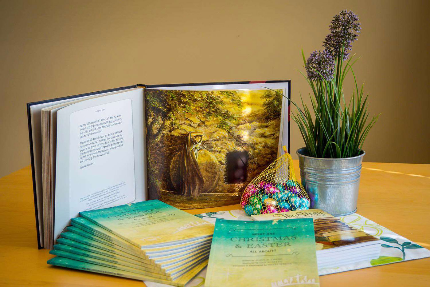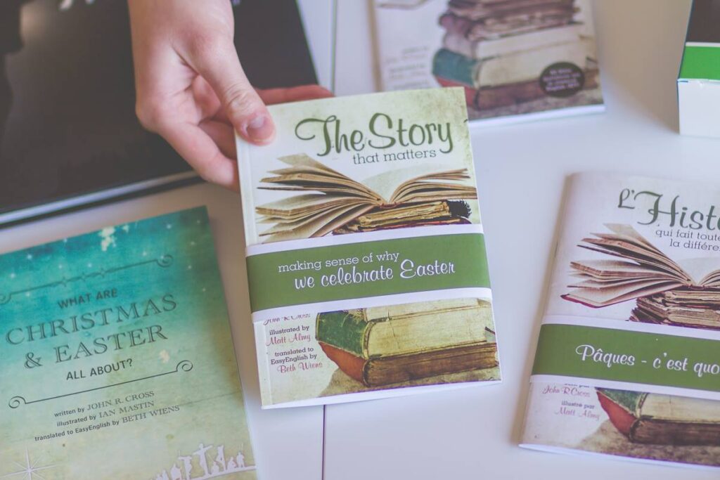 There is also the option of having a stack of What are Christmas and Easter All About? in the reception area or waiting room of your business. Offer them free of charge to customers. You may also consider making it into a display, with a banner “What is Easter about?” above the attractively arranged stacks.