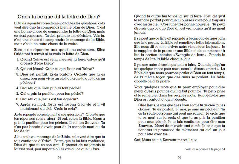 Les églises peuvent choisir de les donner aux visiteurs ou d’en avoir au kiosque de bienvenue. Les gens d’affaires peuvent en laisser dans leur salle d’attente pour permettre à leurs clients d’en prendre. Dieu ouvre les portes de diverses façons et il fournit aux croyants beaucoup d’occasions différentes pour donner le message de l’évangile.